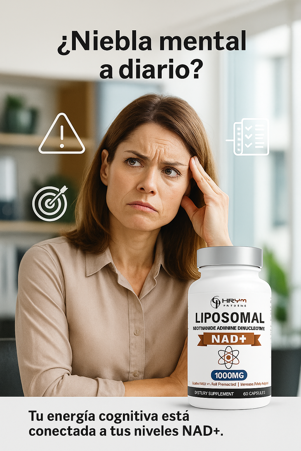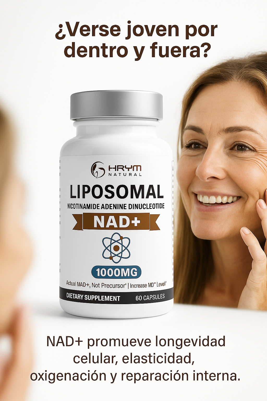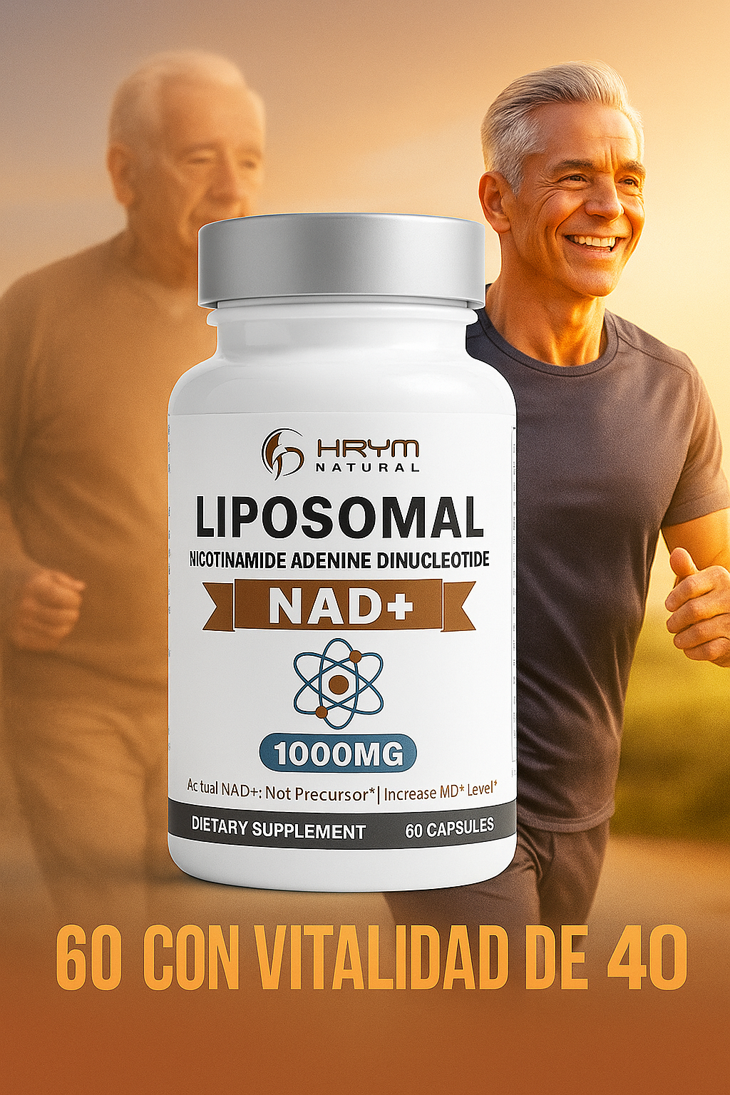 Descubre la fórmula avanzada de NAD+ Liposomal 1000mg, diseñada para revitalizar tu cuerpo desde el núcleo celular. Esta cápsula de alta absorción aporta Nicotinamide Adenine Dinucleotide (NAD+) real —no precursores— para optimizar tus niveles de energía, claridad mental y longevidad celular de forma natural y efectiva.